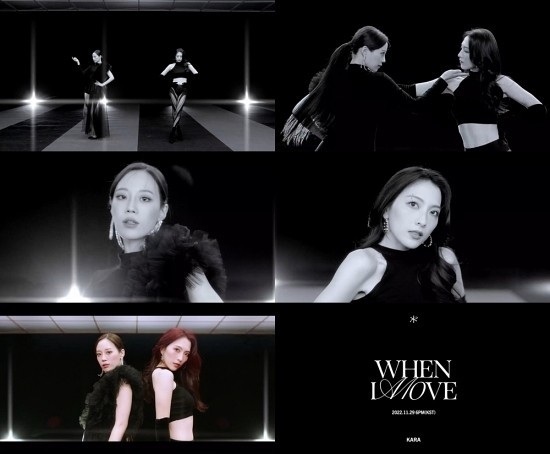 영상 말미에는 타이틀곡 'WHEN I MOVE'의 하이라이트 음원이 일부 선공개돼 기대감을 자아냈다. 카라의 한층 단단하고 파워풀해진 보컬이 추후 공개될 무빙 포스터에 대한 기대감을 키웠다.