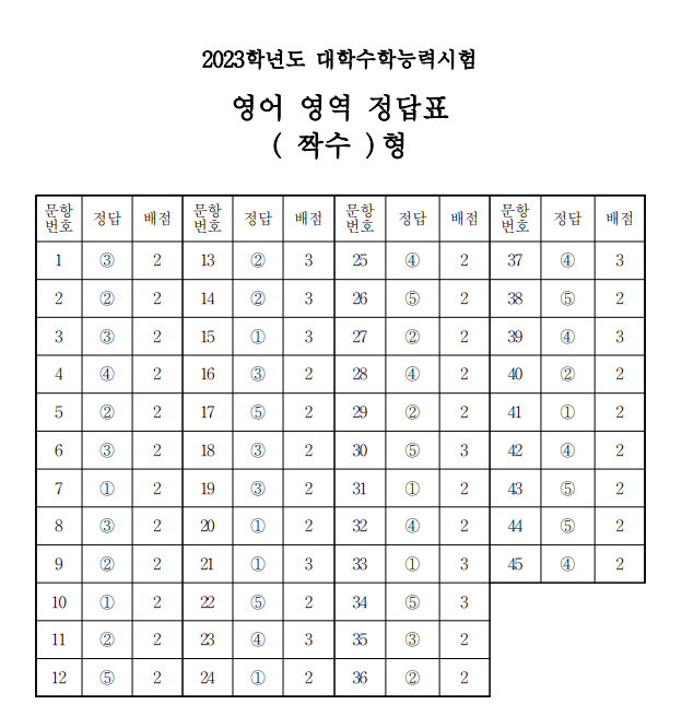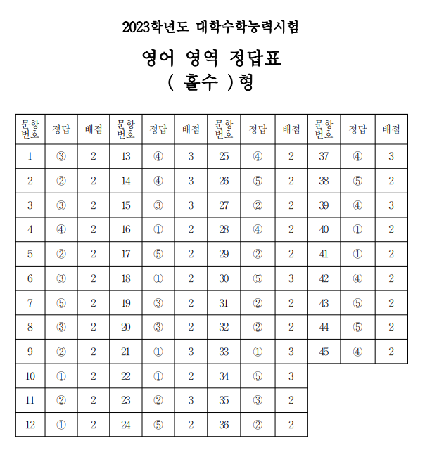 17일 2023학년도 대학수학능력시험(수능) 영어영역 정답지와 난이도가 공개됐다.