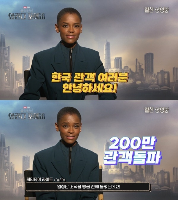 한글날 축하 인사, 수험생 깜짝 응원 영상 등 그동안 남다른 한국 사랑을 보여주었던 레티티아 라이트는 "한국에서 200만 관객을 돌파했다는 엄청난 소식을 들었다"고 놀라워했다.