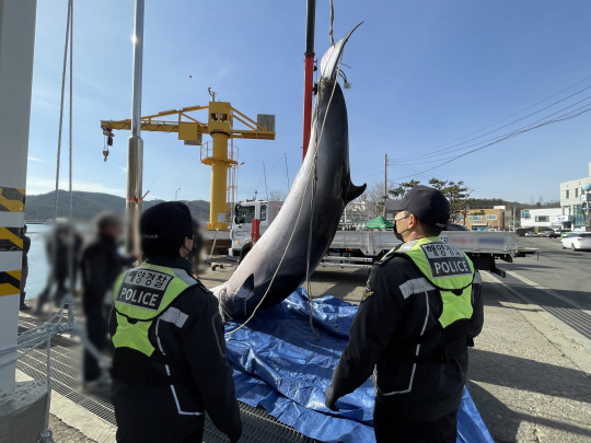 한편 지난달 20일에도 경주시 감포읍 감포항 동방 약 10㎞ 해상에서 조업 중이던 9t급 자망어선이 그물에 걸려 죽은 밍크고래를 발견해 해경에 신고했다.