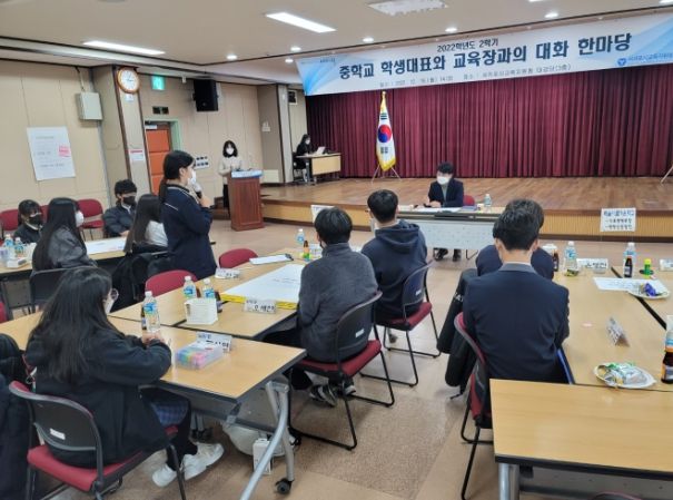 [제주교통복지신문 박희찬 기자] 서귀포시교육지원청은 12월 19일 오후 2시부터 서귀포시교육지원청 대강당에서‘2022학년도 2학기 중학교 학생대표와 교육장과의 대화 한마당’을 개최했다.