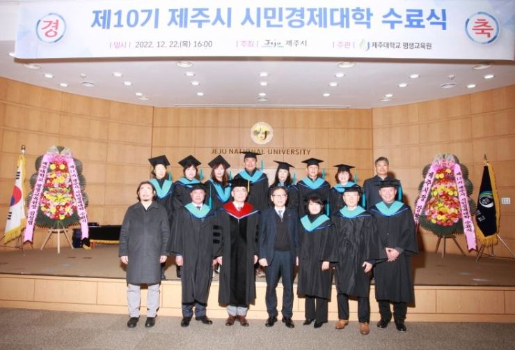 [제주교통복지신문 김현석 기자] 제주시와 제주대학교 평생교육원은 12월 22일 제주대학교 아라컨벤션홀에서 수료생 27명이 참석한 가운데 제10기 제주시 시민경제대학 수료식을 개최했다.