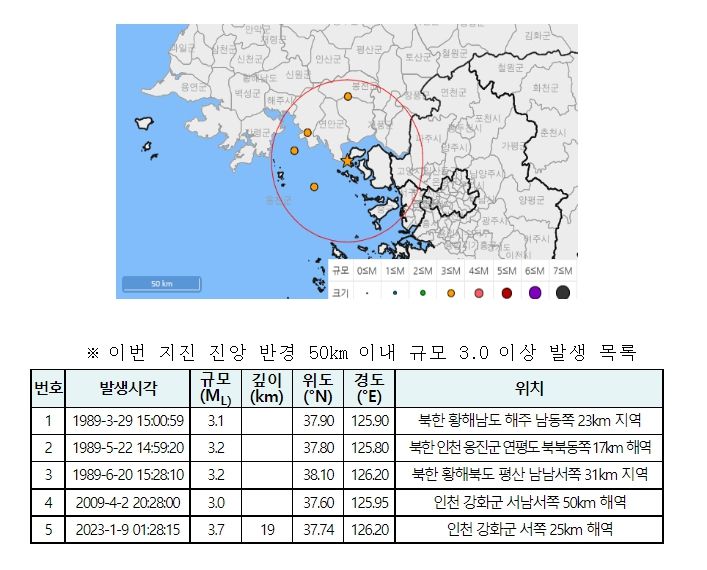 기상청 계기관측(1978년) 이후, 이번 지진은 진앙 주변 50km 이내에서 최대규모에 해당한다.