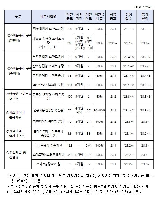 [2023년 스마트제조혁신 지원사업 주요 내용]