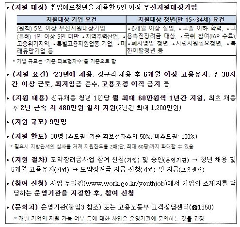 * 최초 1년은 매월 60만원씩 지원, 2년 근속 시 480만원 일시 지원