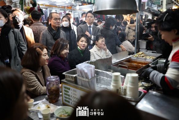 김 여사는 봉사활동에 이어 대구 서문시장을 방문했다. 시장에서 설 명절 준비를 위한 여러 가지 물품과 식자재, 현장에서 먹을 수 있는 다양한 음식을 구매하면서 최근 어려움을 겪고 있는 소상공인과 자영업자들을 격려했다.