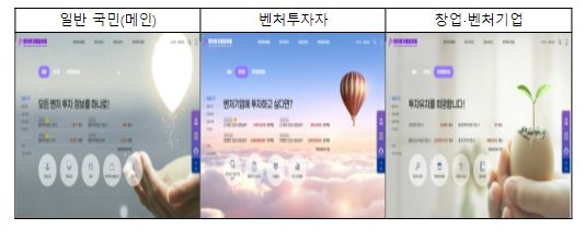이 밖에도 일반 국민, 벤처투자자, 창업‧벤처기업 등 대상별로 관심 분야가 반영된 정보 서비스 화면을 차별적으로 제공함으로써 각자가 원하는 정보를 빠르고 편리하게 검색할 수 있다.