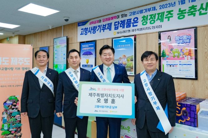 한편 오영훈 지사는 3일 전남 장성군에 고향사랑기부금을 전달했으며, 제주지역에는 탤런트 현석 씨가 입도자 1호로 기부한데 이어 윤석열 대통령, 원희룡 국토교통부 장관, 전남 김한종 장성군수, 공영민 고흥군수 등이 고향사랑기부금을 기탁했다.