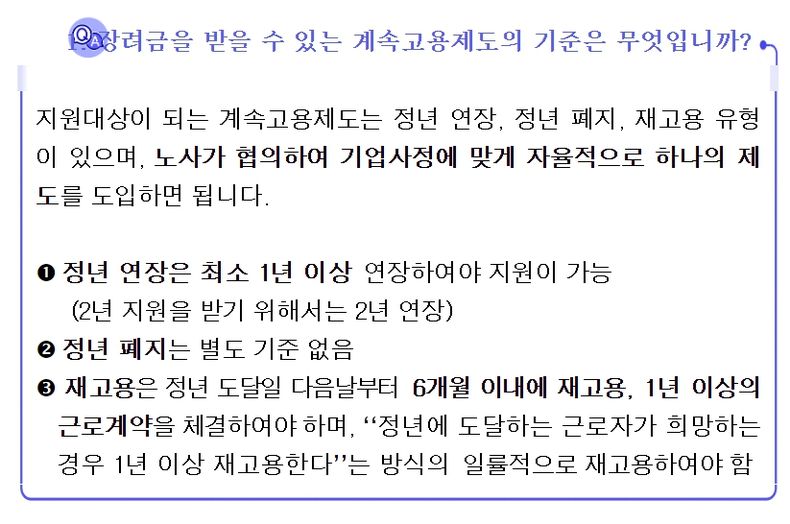 하형소 통합고용정책국장은 “고령자의 고용 활성화와 기업의 자율적 계속고용을 유도하기 위해 올해는 지원을 전년보다 확대하여, 기업이 고령화 시대에 적극적으로 대비할 수 있도록 지원하겠다.”라고 밝혔다.