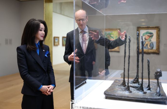 김 여사는 “과거 ‘알베르토 자코메티 한국 특별전’을 전시했던 기획자로서, 오늘의 방문이 더욱 의미있다"면서, "예술가이기 이전에 시대를 통찰하는 사상가였던 자코메티의 작품을 통해, 현대미술에 반영된 시대의 고뇌를 잘 알 수 있었다"고 말했다.
