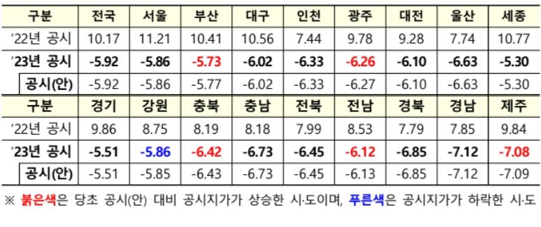 한편, 시·군·구에서는 표준부동산 공시가격을 바탕으로 개별공시지가 및 개별주택가격을 4월 28일 결정·공시할 예정이다.