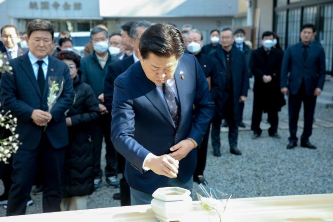 오영훈 제주특별자치도지사는 29일 일본 오사카 통국사 재일본 제주4·3희생자 위령비를 참배하고 재일본 제주4·3희생자유족회 오사카지부와 간담회를 개최했다.
