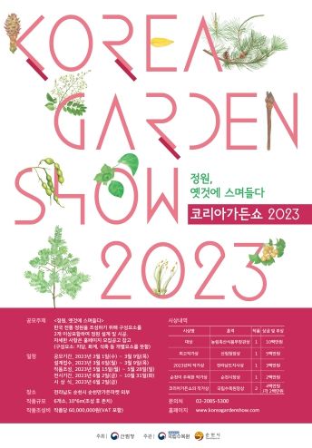 [제주교통복지신문 박상현 기자] 산림청이 주최하고 국립수목원과 순천시 공동 주관하여 올해로 8회째를 맞이하는 '2023 코리아가든쇼' 공모전이 ‘정원, 옛것에 스며들다’라는 주제로 2월 1일부터 3월 9일까지 열린다.