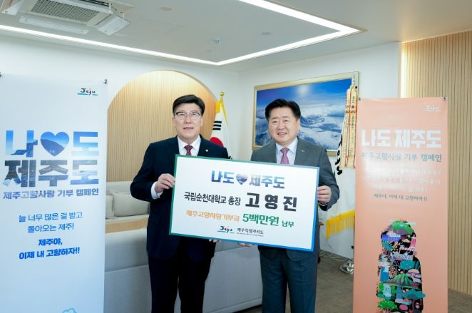 제주특별자치도는 제주 출신인 고영진 국립순천대학교 총장이 고향사랑기부금 500만 원을 전달했다고 밝혔다.