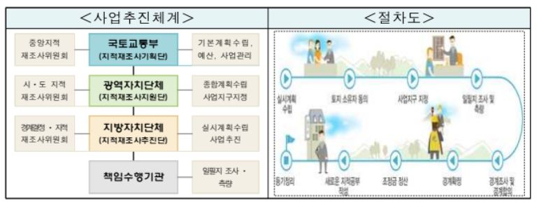 지적재조사사업 민간대행자로 선정된 업체는 계약 등 필요한 절차를 거쳐 책임수행기관인 한국국토정보공사(LX)와 손을 잡고 전국 669개 사업지구(240,950필지, 183,263천㎡)에 해당하는 지적재조사사업을 추진하게되며, 지적재조사 측량비는 국가가 지원한다.