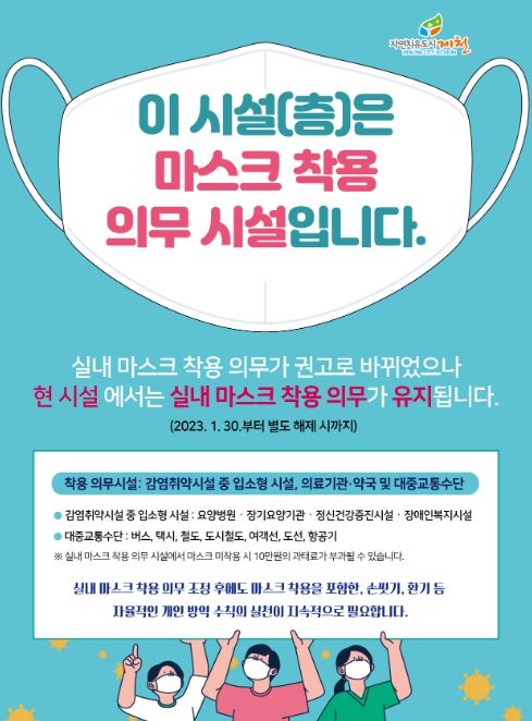 시 관계자는 “개인과 시민의 건강을 보호하기 위해서는 의무시설에서는 반드시 마스크를 착용해야 하며, 대중의 안전을 위해 강력권고 시에도 적극 착용을 부탁드린다”며 “또한 환기와 손 씻기, 기침예절 등 개인의 자율적 방역 실천을 당부드린다”고 말했다.