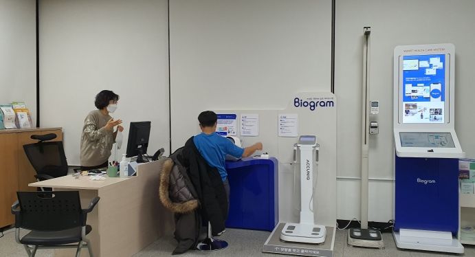 건강센터는 유헬스 기기를 이용해 혈당, 혈압, 중성지방, 고밀도지단백콜레스테롤(HDL), 허리둘레 등을 무료로 검사할 수 있는 곳이다. 정보통신기술(ICT) 기반 바이오그램 애플리케이션을 활용해, 데이터로 건강을 분석하고 관리할 수 있다는 장점이 있다.