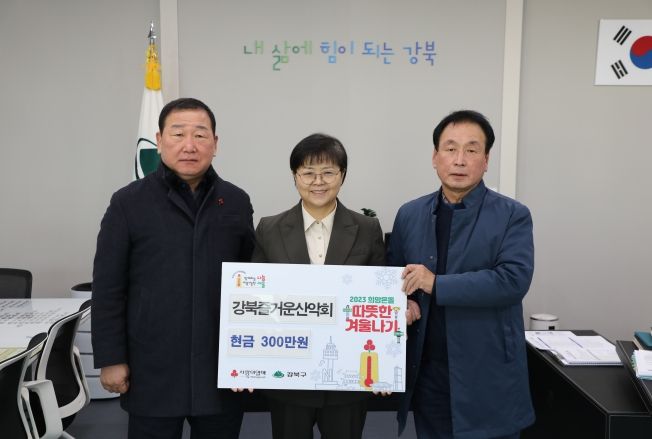 이날 김양술 산악회 대표와 산악회 회원인 강북구의회 이상수 복지건설위원장은 강북구청을 방문해 이순희 구청장에게 직접 기부금을 전달했다.
