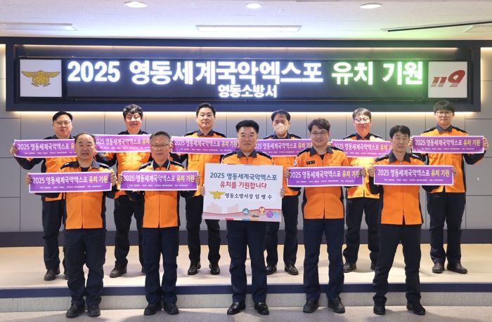이날 임병수 서장을 포함한 영동소방서 직원들은 2025년 영동세계국악엑스포 유치를 위해 적극적인 참여와 관심을 당부하는 피켓과 함께 국악의 고장 영동군의 위상을 널리 알릴 수 있도록 응원의 메시지를 전했다.