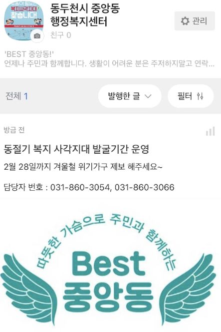 중앙동 행정복지센터는 복지 사각지대 발굴 소식을 비롯하여 지역사회보장협의체, 주민자치위원회, 새마을협의회 등의 활동 내역과 긴급복지, 기초연금 제도까지 주민의 알권리 충족에 필요한 정보를 연중 게시할 계획이다.