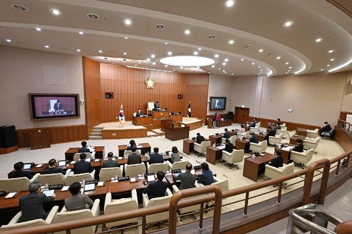 이날 제1차 본회의에서는 안건 상정에 앞서 김지호 의원이 ‘공공하수처리시설 사업’, 이계옥 의원이 ‘의회와 집행부 간 소통 강조 등’, 김현주 의원이 ‘점자보도블록 관리’에 대해 5분 자유발언을 했다.