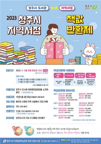 [제주교통복지신문 김강석 기자] 청주시가 오는 7일부터 ‘지역서점 책값반환제’를 시행한다.