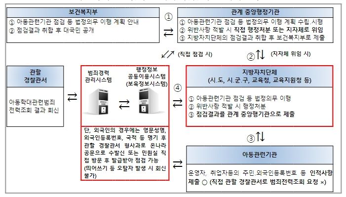 한편, 아동관련기관의 장은 종사자 채용 시 아동학대관련범죄 전력 유무를 확인(아동복지법 제29조의3제5항)하여야 함에도, 확인하지 않은 기관들이 있어 이를 적발하고 과태료를 부과하고 있다.
