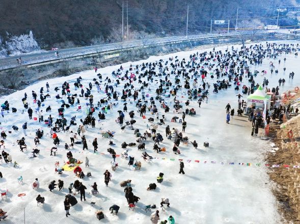얼음판 위에는 수천 명의 가족 관광객들이 얼음썰매, 빙어낚시, 얼음 미끄럼틀 등을 즐기며 장관을 이뤘다. 또한, 겨울왕국을 온 듯한 얼음 조각 조형물, 짜릿한 수십 미터의 빙벽과 이글루는 가족 사진을 찍는 행렬로 북적였다.