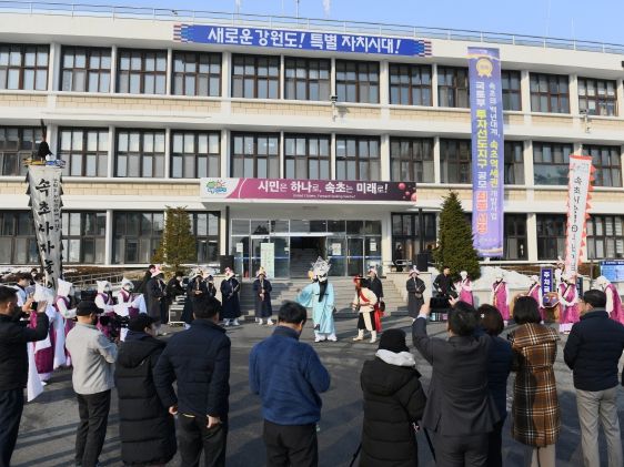 [제주교통복지신문 김강석 기자] 속초시 승격 60주년을 기념하고, 속초시의 대표 무형문화재인 '속초사자놀이'의 유네스코 인류무형문화유산 등재(2022. 12월)를 기념해 지난 2월 5일, 6일 양일간 청호동 일원, 속초시청 및 각 동 주민센터에서 사자놀이와 지신밟기 등 다채로운 행사가 진행됐다.