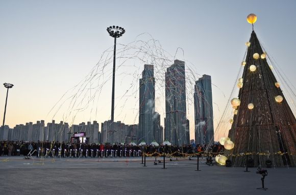 부산 남구는 정월대보름 달맞이축제에서 점등한 LED달집과 포토존을 오는 2월 28일까지 용호별빛공원에 전시한다.