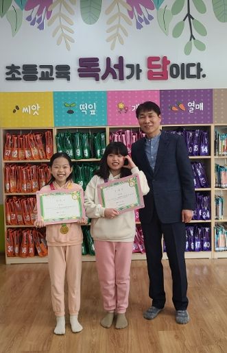 사진 속 주인공인 박다은(사동초등학교 5학년)어린이와 김지수(한내초등학교 3학년)어린이는 각각 떡잎단계 32호와 33호 달성자로 박다은 어린이는 “꾸러미 책을 하루에 한 권씩 읽고 나니 뿌듯하면서 내 자신이 조금은 기특했다. 열심히 독서해서 열매단계까지 달성하도록 하겠다.”는 당찬 포부를 밝혔다.