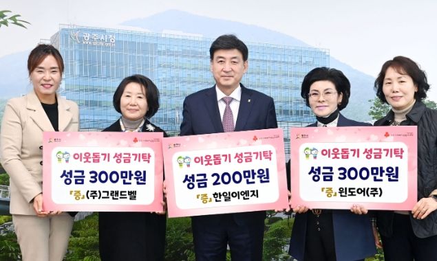 기탁식에 참석한 이들은 “난방비가 급등한 요즘, 이번 성금 기탁을 통해 조금이나마 광주시의 어려운 이웃에게 도움이 됐으면 한다”고 기부 소감을 전했다.