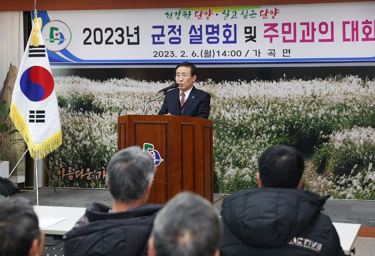 군정 설명회는 지난 6일 가곡면을 시작으로 7일 단성·대강면, 8일 매포읍, 적성면, 9일 영춘·어상천면, 10일 단양읍 등 8개 읍․면을 순회하며 5일간 진행된다.