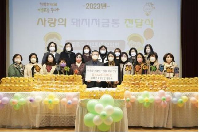 [제주교통복지신문 김강석 기자] 중랑구는 6일 오전 중랑구청 지하대강당에서 중랑구 어린이집연합회로부터 가정·민간·국공립어린이집 원아들이 1년 동안 모은 ‘사랑의 돼지 저금통’ 모금액을 전달받았다.