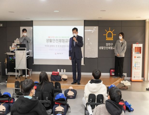 지난 2016년 개소한 양천생활안전체험교육관은 1급 구조사 자격증을 보유한 전문강사 3명이 상시 근무하며, 자치구 중 최초 도입한 ‘피드백 교육마네킹’을 활용해 ▲가슴압박 심폐소생술 ▲자동심장충격기(AED) 사용법 ▲기도폐쇄 응급처치법 등의 실습교육과 출혈, 화상 시 드레싱, 붕대법 등의 외상응급처치반을 운영하고 있다. 또한, 화재, 연기 피난, 피난기구 가상체험을 통해 상황별 대처방법을 습득할 수 있는 생활안전체험장도 상시 운영 중이며, 지금까지 2,540회에 걸쳐 총 56,372명의 교육 이수자를 배출할 만큼 인기가 높은 곳이다.