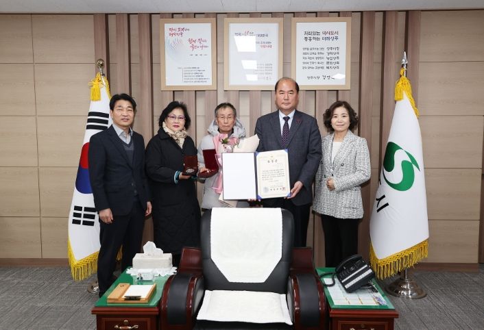 [제주교통복지신문 김강석 기자] 상주시는 2월 6일(월) 6.25전쟁에 참전해 공을 세운 故윤용덕 일병 자녀 윤상철 씨에게 화랑무공훈장과 훈장증을 전수했다.
