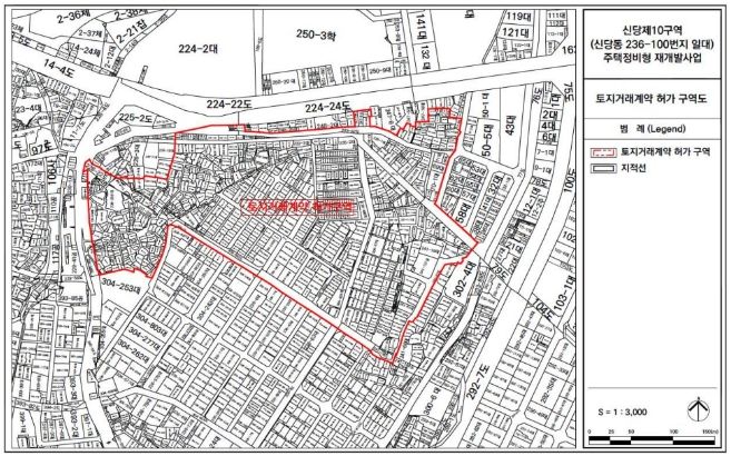 서울시는 지난 1월 19일 '토지거래계약허가구역 재지정 공고'를 통해 신속통합기획(재개발·재건축) 선정지 등 13개소에 대해 허가구역을 재지정했다. 중구 관내에는 장충동2가와 쌍림동, 신당동과 무학동이 포함됐으며 허가구역 지정기간은 2023년 1월 29일부터 2024년 1월 28일까지이다. 허가가 필요한 면적 기준은 주거지역의 경우 6㎡를 초과한 경우, 상업지역은 15㎡를 초과한 경우이다.