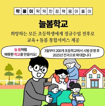 ‘늘봄학교’는 방과 후 교육 활동을 내실화하고 돌봄의 질을 제고하여 교육과 돌봄을 통합적으로 제공하는 정책인데 학부모의 돌봄 부담을 경감하고 교육격차를 해소하기 위해 마련됐어요.