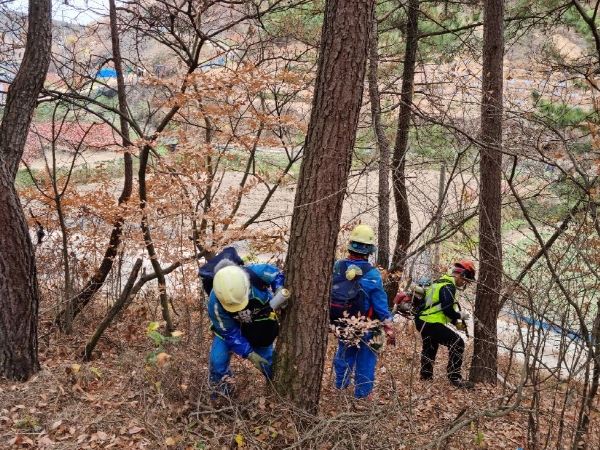 이번 사업은 지난해 감염목이 발생한 산청읍, 단성면, 생비량면을 대상으로 감염목 발생 반경 200~250m 이내 소나무림 13㏊에 대해 이뤄졌다.