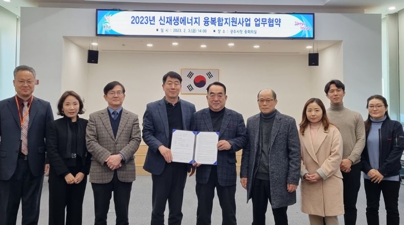 [제주교통복지신문 김강석 기자] 광주시는 지난 3일 시청 중회의실에서 한국에너지공단, 참여기업, 곤지암읍 수요자 대표와 함께 ‘2023년 신재생에너지 융‧복합지원사업 추진을 위한 업무협약’을 체결했다.