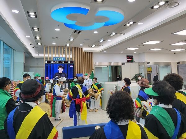 이날 명장1동 새마을지도자, 새마을부녀회 회원들은 주민센터, 새마을금고 및 상가 등 마을 곳곳을 돌며 가게의 번창과 가정의 평안을 축원하며 신명 나는 풍물 한마당을 펼쳤다.