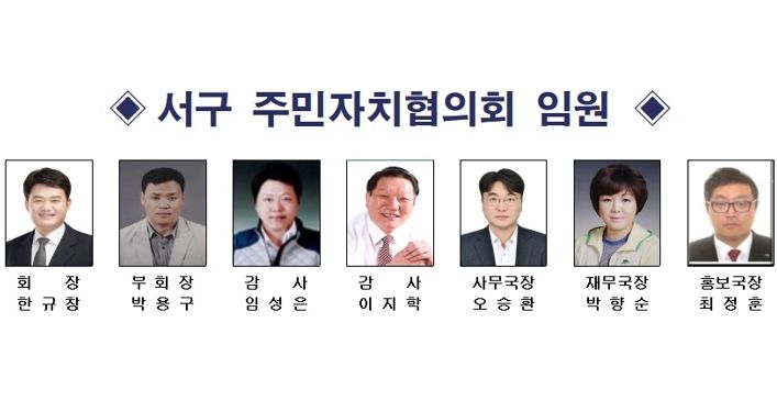 한규장 신임 회장은 “협의회장이라는 막중한 자리를 맡은 만큼 협의회의 도약과 발전은 물론 서구 주민자치회의 화합과 발전을 위해 최선을 다하겠다”며 “서구 주민 여러분의 많은 관심과 격려를 부탁드린다”고 말했다.