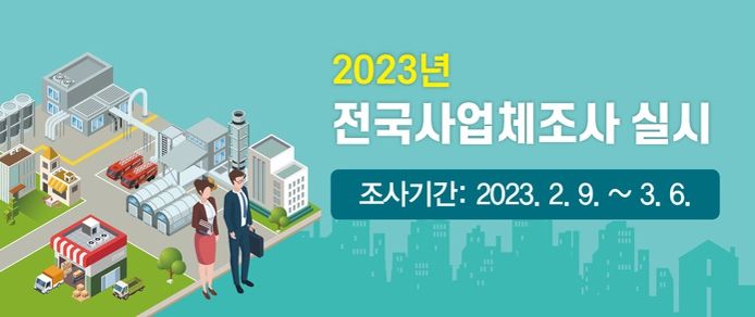전국사업체조사는 국내 산업 전반의 구조와 분포에 관한 사항을 파악해 주요정책 수립, 학술연구의 기초자료로 활용하기 위한 것으로 매년 통계청에서 주관하고 전국 지자체에서 실시한다.