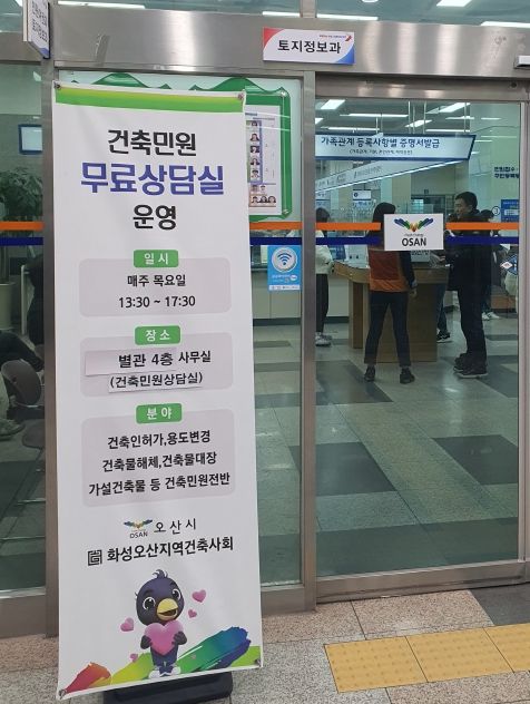 [제주교통복지신문 김강석 기자] 오산시는 올 한 해 매주 목요일 13시 30분부터 16시 30분까지 오산시청 별관4층 건축민원상담실에서 ‘건축민원 무료 상담실’을 운영한다.