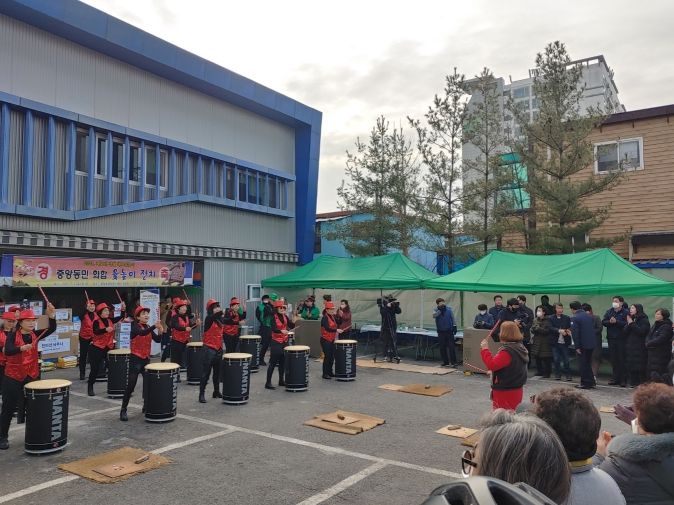 중앙동 문화강좌 수강생의 난타와 경기민요 등 공연을 시작으로 윷놀이대회가 이어졌다.