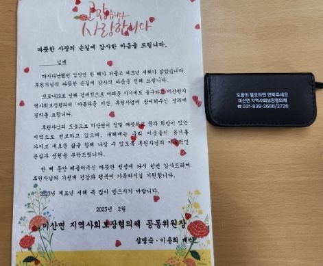[제주교통복지신문 김강석 기자] 연천군 미산면 지역사회보장협의체는 7일 지난해 지역사회 나눔 활동에 앞장선 후원자 87명을 대상으로 감사 서한문을 전달했다.