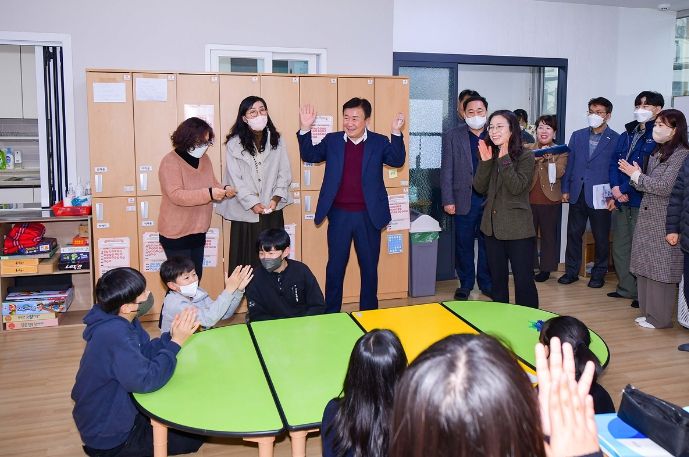 이어 솔샘지역아동센터를 방문해 난방상태 등 운영상황을 살피고 종사자와 시설이용학생들을 격려했다.