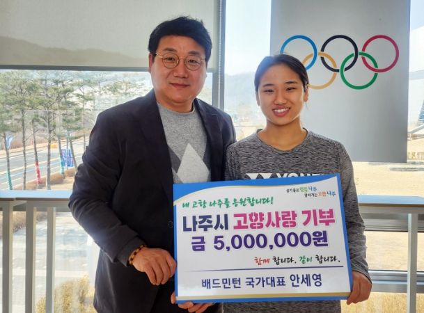 현재 나주시 체육회 사무국장으로 활동 중인 아버지 안정현 씨는 “나주는 고향을 넘어 딸의 꿈을 키워준 곳이자 지금의 국가대표 안세영을 있게한 곳”이라며 “고향에 기부금을 기탁할 수 있는 좋은 제도가 있어 참여하게 됐다”고 기탁 소감을 밝혔다.