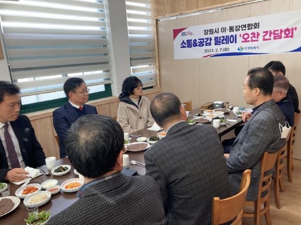 [제주교통복지신문 김강석 기자] 창원특례시는 7일 수요자 중심의 행정을 펼치기 위해 시정의 최접점에 있는 이‧통장연합회 임원진과 만나 소통‧공감 릴레이 간담회를 가졌다고 밝혔다.