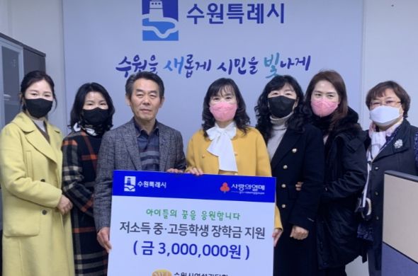 [제주교통복지신문 김강석 기자] 수원시여성리더회가 “저소득 가정 중·고등학생에게 전달해 달라”며 수원시에 장학금 300만 원을 기부했다.